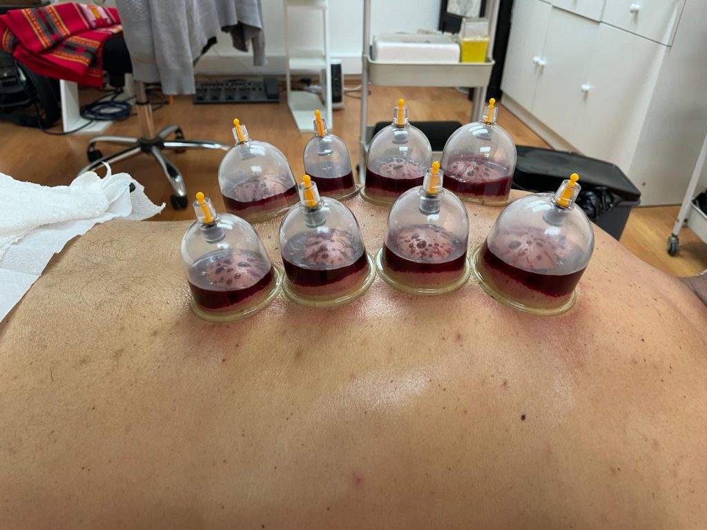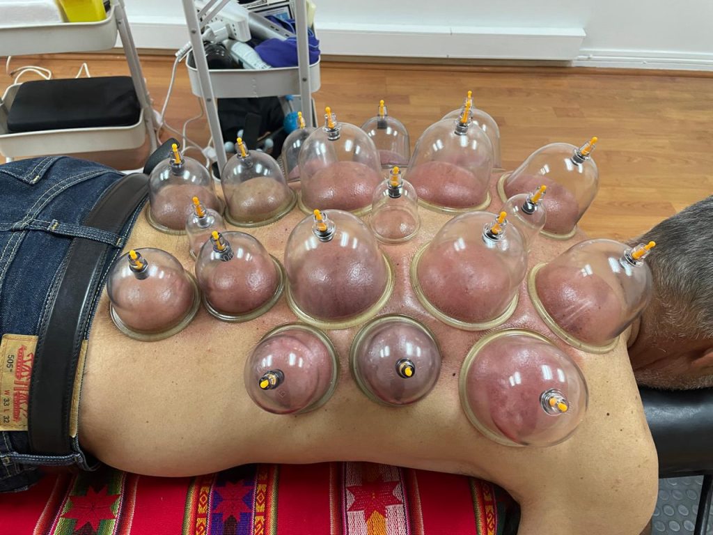 - Aplicación de ventosas en puntos estratégicos para aliviar contracturas.